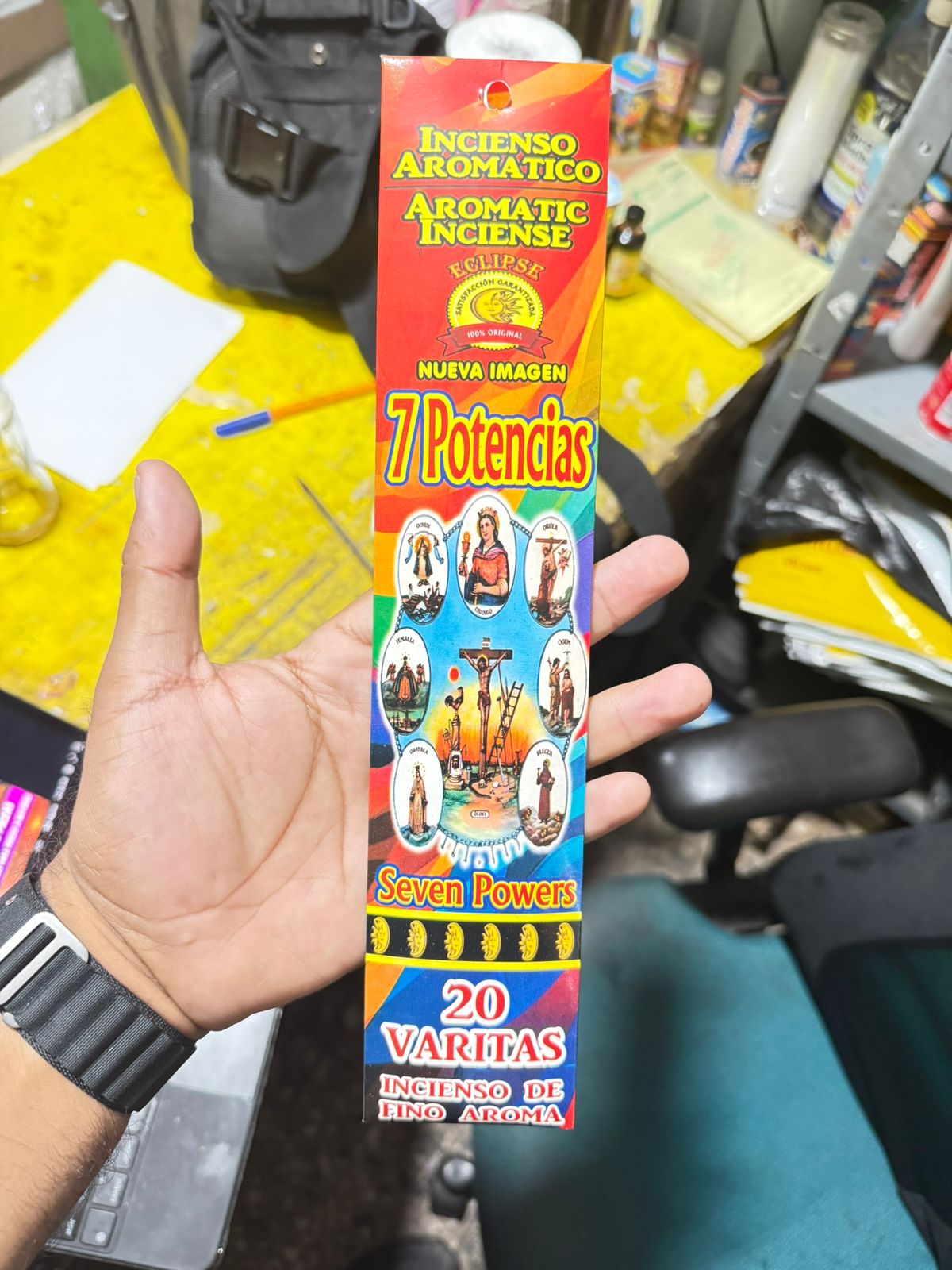 ## Propiedades y significado El incienso de 7 potencias se considera un elemento poderoso para: 1. *Protección y defensa*: Se cree que protege contra energías negativas, malas intenciones y entidades espirituales no deseadas. 2. *Atraer bendiciones y prosperidad*: Se asocia con la atracción de bendiciones, prosperidad y buena suerte. 3. *Purificación y limpieza*: Se utiliza para purificar y limpiar espacios, objetos y personas de energías negativas. 4. *Conexión con los orishas y espíritus*: En el vudú, se utiliza para establecer una conexión con los orishas y espíritus, solicitando su guía y protección.